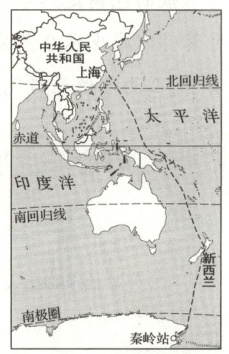 2024年10月22日,中国第41次南极考察队乘坐“雪龙”号考察船从上海出发,沿既定航线到达秦岭站进行南极气候变化及生态系统研究,2025年4月完成考察任务返航。下图示意南极考察航线。据此完成13~15题。