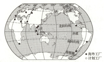 近年来,中国汽车产业发展迅速。某国产汽车品牌在海外拥有多家工厂,近期计划在英国新建工厂。下图为某国产汽车品牌在海外工厂分布图。读图,完成14~15题。