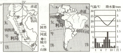 (1)位于南美洲秘鲁沿海,利马以北约80千米处,西临太平洋 降水少,晴天多