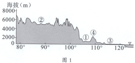 读中国沿32°N纬线地形剖面图(图1),完成1~3题。