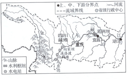 长江干流的乌东德、白鹤滩、溪洛渡、向家坝、三峡、葛洲坝水电站(含水利枢纽)连珠成串,构成世界最大的清洁能源走廊。读图文资料,完成1~4题。