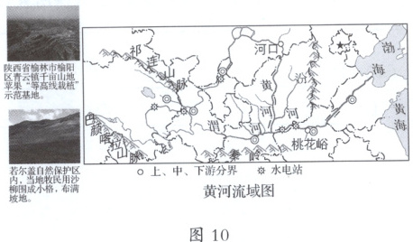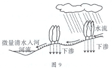 材料二:图7为黄河流域图、图8为黄河干流水量变化示意图、图9为护坡林草带的作用示意图。