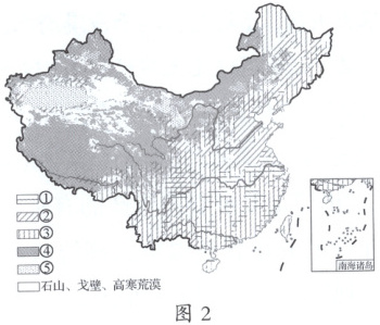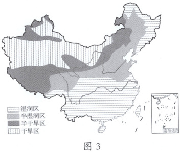 我国国土面积辽阔,各地干湿状况差异很大,土地类型多种多样。图2为我国土地利用类型图,图3为我国干湿地区划分图。
