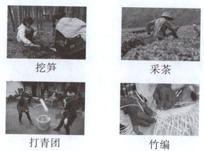 (地理实践力)某地推出了以农业活动为基础的亲子活动,包括挖笋、采茶、打青团、竹编等项目(如下图所示)。据此完成1~3题。