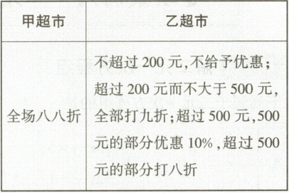 (1)当一次性购物的标价总额是300元时,在甲超市实付款$300×0.88=264$(元),在乙超市实付款$300×0.9=270$(元).答:在甲超市实付款264元,在乙超市实付款270元.