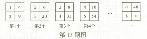 13. 如图,下面每个格中的四个数都是按相同规律填写的,根据此规律,$x$ 的值为