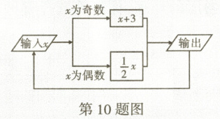 10. 跨学科·信息技术有一数值转换器,原理如图所示. 若开始输入的 $x$ 的值是5,可发现第一次输出的结果是8,第二次输出的结果是4……则第2025次输出的结果是(