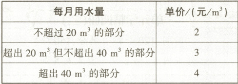元.(2)小豪家7月份用水 $a$m³(其中 $a > 40$),求7月份应缴水费多少元(用含 $a$ 的代数式表示).