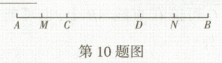10. 如图,点C,D是线段AB上任意两点,点M是线段AC的中点,点N是线段DB的中点。若CD=10,MN=14,则线段AB的长为