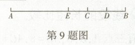 9. 如图,已知AB=6,点C是线段AB上一点,且AC=$\frac{2}{3}$AB,点D,E分别是线段BC,AB的中点,则DE=