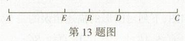 13. 如图,点C为线段AB延长线上的一点,D为线段BC上的一点,CD=2BD,点E为线段AC上的一点,CE=2AE。