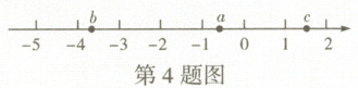4. 若$a,b,c$三个数在数轴上的位置如图所示,则下列结论中错误的是 (