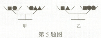 5. 小亮学习了等式的性质后,在甲、乙两台天平的左右两边分别放入“■”“●”“▲”三种物体,如图,天平都保持平衡. 若设“■”与“●”的质量分别为 $m,n$,则下列关系式中正确的是 (