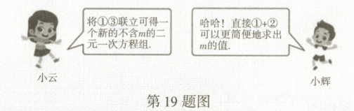 19. 新情境 数学活动课上,小云和小辉在讨论老师出示的一道二元一次方程组的问题:
