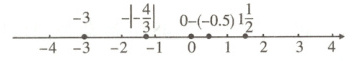 $0$,$1\frac{1}{2}$,$-3$,$-(-0.5)$,$-\vert -\frac{4}{3}\vert$.