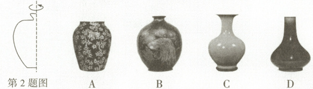 2. 将如图所示的图形绕虚线旋转一周后,得到的几何体与下列花瓶形状最相似的是(