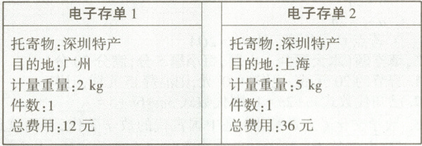 (2)任务2:小颖给在汕头的表哥寄出了2.8kg的深圳特产,她需要支付快递费多少元?