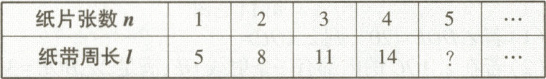 所以纸片张数为$n$时,纸带周长$l$为$3n + 2$.