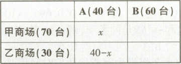 23. 核心素养·模型观念某企业采购了A品牌冰箱40台,B品牌冰箱60台,准备让其旗下的甲、乙两家商场出售,其中70台给甲商场,30台给乙商场. 两家商场销售这两种品牌冰箱每台的利润(元)如下表所示.