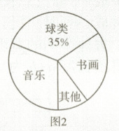 人;在图2的扇形统计图中,"音乐"部分所对应的圆心角的度数为108°