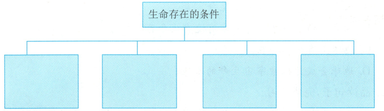 五、1.1 提取关键信息 适合生物生存的温度 必要的水分 适当成分的大气 足够的光和热