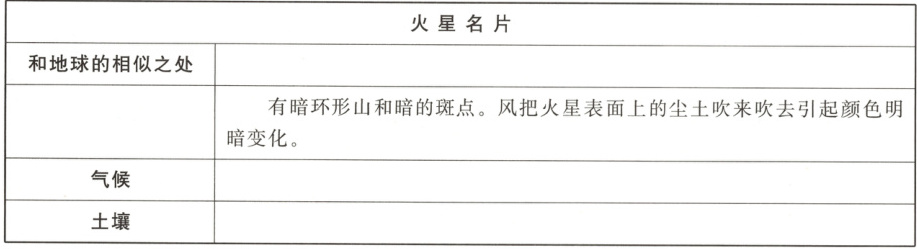 四、4.自转周期相近,昼夜长短相近,都有四季变化,有大气层。 表面特征非常干燥,大气层非常稀薄,氧气含量极少,表面温度很低,磁场非常弱。 土壤中未检测到有机分子,未发现微生物的存在。
