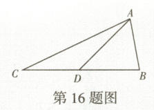 16. 如图,在△ABC 中,AD 是边 BC 上的中线,△ADC 的周长比△ABD 的周长多 5 cm,AB 与 AC 的和为 13 cm,求边 AB,AC 的长.