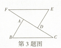 3. 如图,点F,A,D,C在同一条直线上,$\triangle ABC\cong\triangle DEF$.若$AD = 3$,$CF = 10$,则AC的长是(