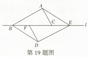 19. 如图,已知点B,F,C,E在直线l上,点A,D在l异侧,连接AE,BD且$AC// DF$,$AC = DF$,$\angle ABC=\angle DEF$.