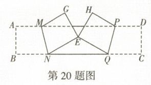 20. 核心素养·几何直观 如图,将长方形纸片 ABCD 沿 MN 和 PQ 折叠得到一个轴对称的帽子,折痕角∠AMN = ∠DPQ,点 A,D 的对应点分别为点 G,H,折叠后点 B,C 的对应点恰好都在点 E.