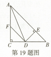 19. 如图,在 Rt△ABC 中,∠ACB = 90°,点 D 是边 BC 上的一点,DF//AB 交 AC 于点 F,BD = DF = AF,DE⊥AB 交 AB 于点 E. 求证: