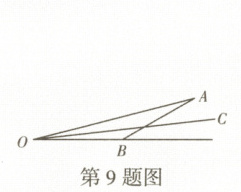 9. 如图,在$ \triangle AOB $中,$ \angle OAB = \angle AOB = 15^{\circ} $,$ OB = 6 $,$ OC $平分$ \angle AOB $.若点$ P $在射线$ OC $上,点$ Q $是边$ OA $上的一动点,则$ PA + PQ $的最小值是 (