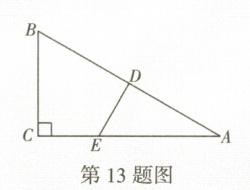 13. 如图,在$ Rt \triangle ABC $中,$ \angle C = 90^{\circ} $,$ \angle A = 30^{\circ} $,$ AB $的垂直平分线交$ AB $于点$ D $,交$ AC $于点$ E $,$ AC = 9 $,则$ AE = $