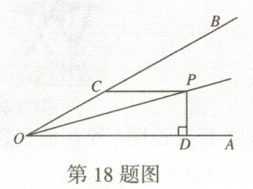 18. 如图,已知$ \angle AOB = 30^{\circ} $,点$ P $是$ \angle AOB $平分线上的一点,过点$ P $作$ PC // OA $交$ OB $于点$ C $,$ PD \perp OA $于点$ D $,若$ PC = 6 $.