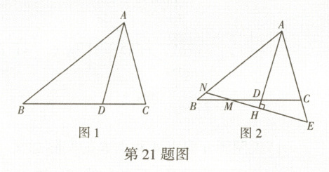 .(2)若点$ M $为线段$ BC $上的点,过点$ M $作直线$ MH \perp AD $于点$ H $,分别交直线$ AB $,$ AC $于点$ N $,$ E $,如图2.