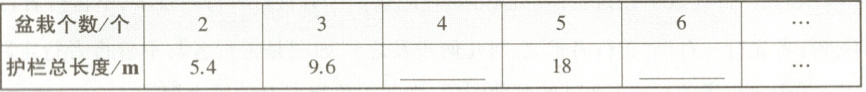 (2) 设有$ x $个盆栽,护栏总长度为$ y $m,则$ y $与$ x $之间的关系式是