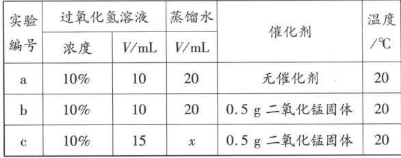 (1)设计实验 b 和 c 的目的是探究溶液浓度对过氧化氢分解反应速率的影响。实验中 x 的数值为