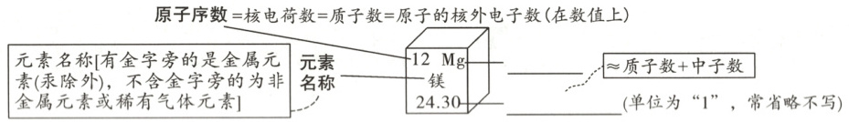 【易错点】①原子在化学变化中不可再分,但原子本身可再分;②不是所有原子都有中子,有一种氢原子中只有一个质子和一个电子,没有中子。