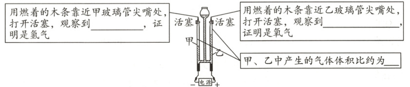 _,证明是氢气用燃着的木条靠近乙玻璃管尖嘴处,打开活塞,观察到 _ ,证明是氧气
