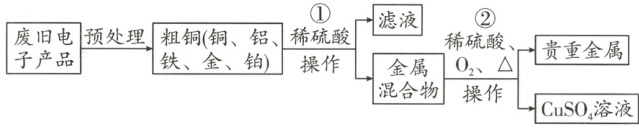 1. 从某废旧电子产品中可以提炼贵重金属,并得到硫酸铜溶液,其工艺流程如图所示,回答下列问题。