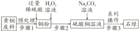2. 以黄铜废料为原料制备石绿$[Cu_{2}(OH)_{2}CO_{3}]$的一种流程如下:
