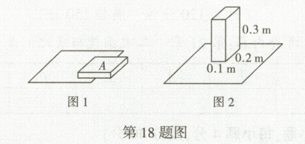 18. 【跨学科·物理】如图 1, 将一长方体 $ A $ 放置于一水平玻璃桌面上, 按不同的方式摆放, 记录桌面所受压强 $ p $ Pa 与受力面积 $ S $ $ m^2 $ 的关系如下表所示(与长方体 $ A $ 相同质量的长方体均满足此关系).