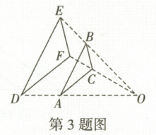 3. 如图,$\triangle ABC$ 与 $\triangle DEF$ 位似,点 $O$ 为位似中心,相似比为 $2:3$.若 $\triangle ABC$ 的周长为 $4$,则 $\triangle DEF$ 的周长是 (