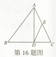16. 如图,在△ABC 中,AD 是边 BC 上的高,点 E 为边 AC 的中点,BC = 14,AD = 12,sin B = $\frac{4}{5}$.