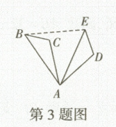 3. 如图,将$\triangle ABC$绕点A顺时针旋转$60^{\circ}$得到$\triangle AED$.若$AB = 7$,$AC = 5$,$BC = 3$,则BE的长为(