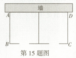 15. 某校规划出一块矩形苗圃 $ ABCD $,苗圃的一面靠墙(墙最大可用长度为 12 m),另三边用木栏围成,中间也用垂直于墙的木栏隔开分成面积相等的两个区域,并在如图所示的两处各留 1 m 宽的门(门不用木栏),修建所用木栏总长 28 m. 设矩形苗圃 $ ABCD $ 的一边 $ CD = x \, m $.