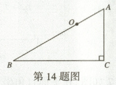 14.解:如图,过点 O 作$OD\perp AC$于点 D.(2 分)