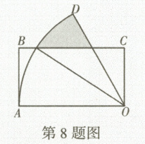 8. 如图,在矩形 $ OABC $ 中, $ OA = 4 $, $ AB = 2 $,以点 $ O $ 为圆心, $ OA $ 为半径作弧,且 $ \angle AOD = 60^{\circ} $,则阴影部分 的面积为 (
