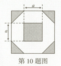 10. 为了增加绿化面积,某小区将原来正方形地砖更换为如图所示的正八边形植草砖,更换后,图中阴 影部分为植草区域.设正八边形及其内部小正方形的边长都为 $ a $,则阴影部分的面积是