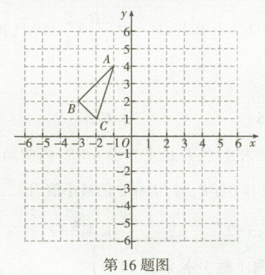 16. 如图,在平面直角坐标系中,网格中每一个小正方形的边长为 1 个单位, $ \triangle ABC $ 的顶点均在格点上.